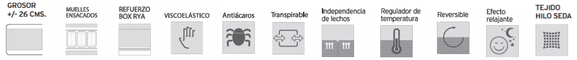 Es uno de los colchones más confortables de Rya. Su sistema de muelles nos ofrece precisión ergonómica y la máxima transpiración, muelles ensacados individualmente que se adaptan al cuerpo de forma precisa, proporcionando una ergonomía perfecta.