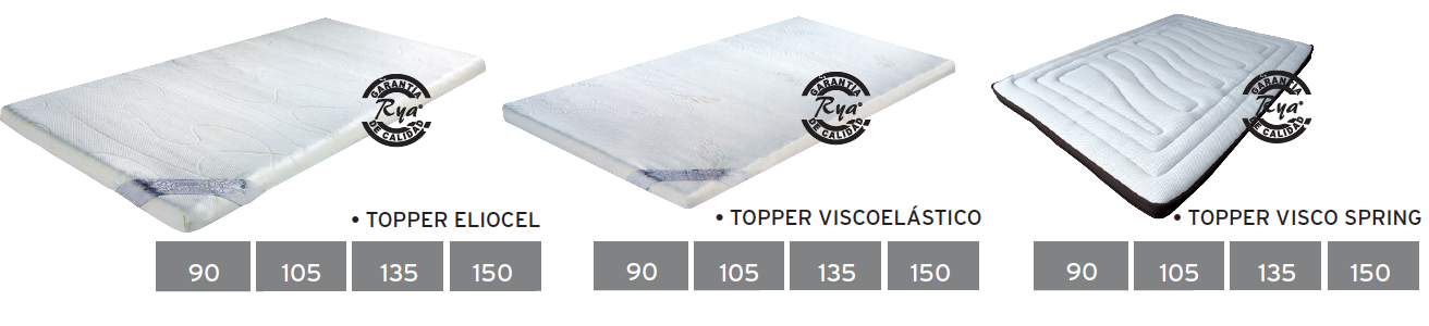 Colchones tipo Topper Viscoelásticos. Disponibles en numerosos tamaños.