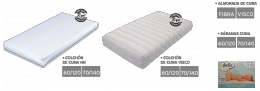 Colchones de tipo cuna con sus respectivas almohadas y sábanas. Disponible en Fibra y en Visco....